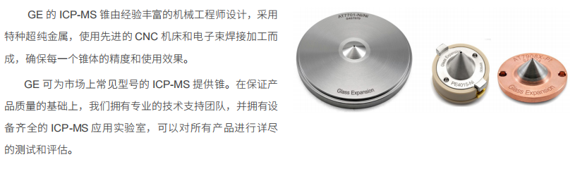 GE 的 ICP-MS 錐由經(jīng)驗(yàn)豐富的機(jī)械工程師設(shè)計(jì),采用特種超純金屬,通過精密 CNC 機(jī)床和電子束焊接加工而成,確保每一個(gè)錐體的精度和使用效果。