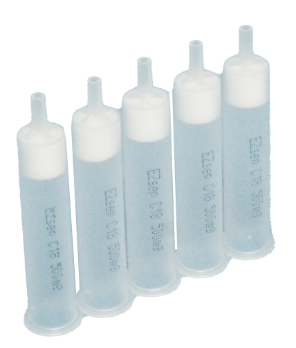 以球形硅膠作為基體,在特定條件下讓硅膠表面的硅羥基與硅烷化試劑反應(yīng),使硅膠表面被指定的化學(xué)官能團(tuán)覆蓋,從而得到了 EZsepTM硅膠鍵合吸附劑,鍵合官能團(tuán)的類型決定著硅膠鍵合吸附劑的吸附特性。由于空間位阻的影響,硅烷化反應(yīng)最高僅能覆蓋硅 膠表面 50% 的硅羥基,殘余的硅羥基會(huì)與極性目標(biāo)化合物(尤其是堿性化合物)發(fā)生極性相互作用,這種相互作用是獨(dú)立于鍵合官能團(tuán)以外的作用力,通常被稱作“次級(jí)相互作用”(Secondary Interaction)。在反相吸附劑中,次級(jí)相互作用是不被期望的,因?yàn)榉聪辔絼?duì)目標(biāo)化合物的保留是通過非極性相互作用實(shí)現(xiàn)的,次級(jí)相互作用的存在改變了反相吸附劑的保留機(jī)制。為了消除反相吸附 劑中的次級(jí)相互作用,我們使用空間位阻較小的短碳鏈硅烷化試劑與硅膠表面殘余的硅羥基進(jìn)行反應(yīng),這一處理方法被稱為“封端”(Endcap)。對(duì)于正相吸附劑和離子交換吸附劑,次級(jí)相互作用并不被排斥或影響不顯著,因而不必進(jìn)行封端處理。