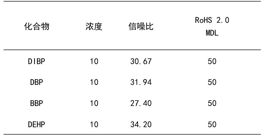 測試結果顯示,PRA600 RoHS 2.0快篩分析儀對四種鄰苯二甲酸酯的檢出限低于最低檢出限50μg/mL,完全滿足標準要求。
