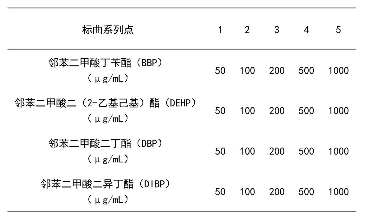 表2 四種鄰苯二甲酸酯檢出限(μg/mL)