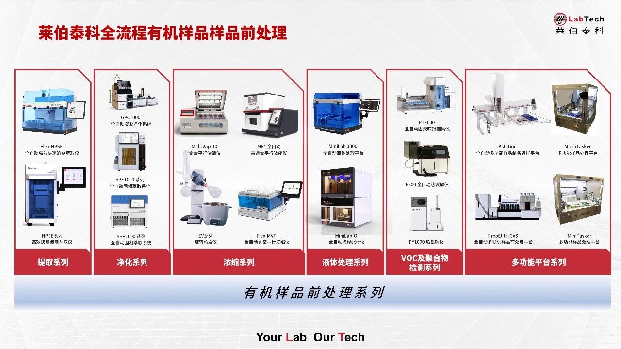全流程有機前處理:針對有機化合物檢測中最繁瑣的步驟,我們整合了提取、凈化、濃縮的整體方案,把實驗人員從低效的體力勞動中解放出來,回歸科研本質(zhì)。