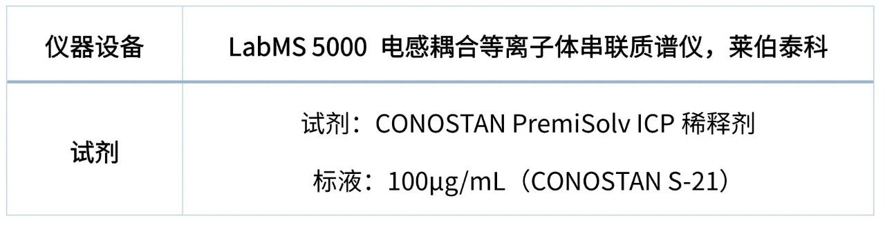 本實驗中,無需繁復(fù)的樣品前處理,直接加入CONOSTAN PremiSolv ICP稀釋劑,混勻后作為樣品。