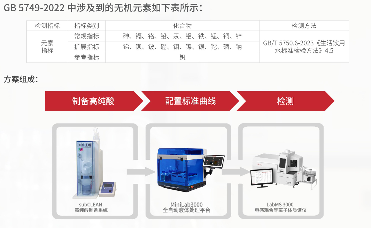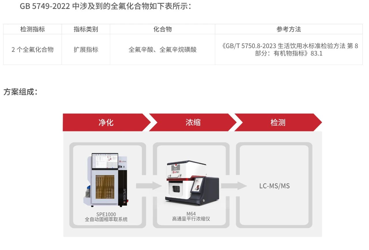 GB 5749-2022《生活飲用水衛(wèi)生標(biāo)準(zhǔn)》已于2023年4月1日正式實(shí)施,與之配套的《生活飲用水標(biāo)準(zhǔn)檢驗(yàn)方法》GB/T 5750-2023將于2023年10月1日正式實(shí)施。作為樣品前處理與分析檢測技術(shù)的先鋒企業(yè),萊伯泰科積極響應(yīng)新標(biāo)準(zhǔn)的要求,特推出全新的《生活飲用水行業(yè)解決方案》,旨在為用戶提供便捷的應(yīng)對方案以及多方位的支持和保障,為新標(biāo)準(zhǔn)的實(shí)施提供有力的支持。