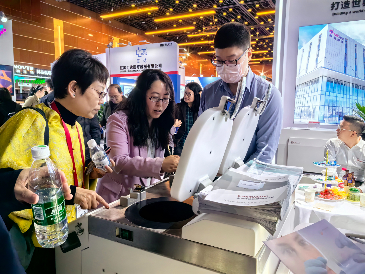 萊伯泰科展臺絡(luò)繹不絕的參觀人群