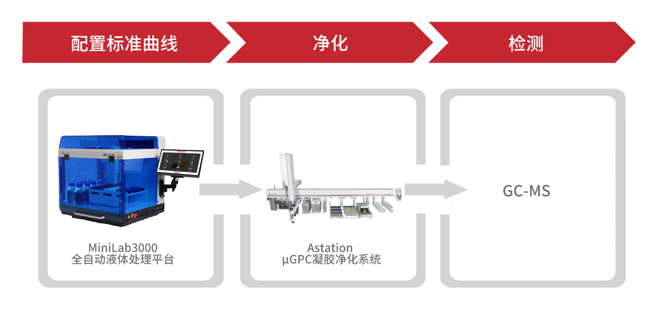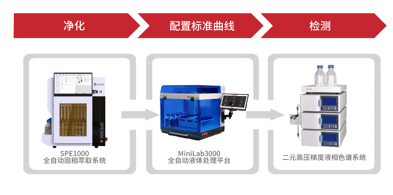 該方案可以實現(xiàn)自動化、高通量的提取、凈化,有效避免和減少有機(jī)試劑對分析人員造成的健康危害,減少人員用量、減少人為誤差,方法準(zhǔn)確性好、精密度高、可以實現(xiàn)高通量自動化的檢測。