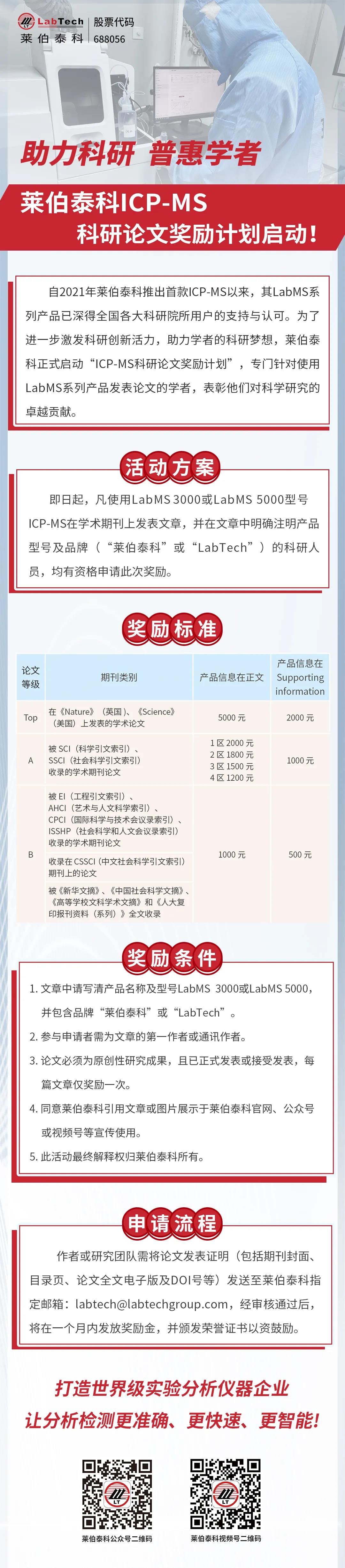 助力科研 普惠學(xué)者——萊伯泰科ICP-MS科研論文獎(jiǎng)勵(lì)計(jì)劃正式啟動(dòng)!