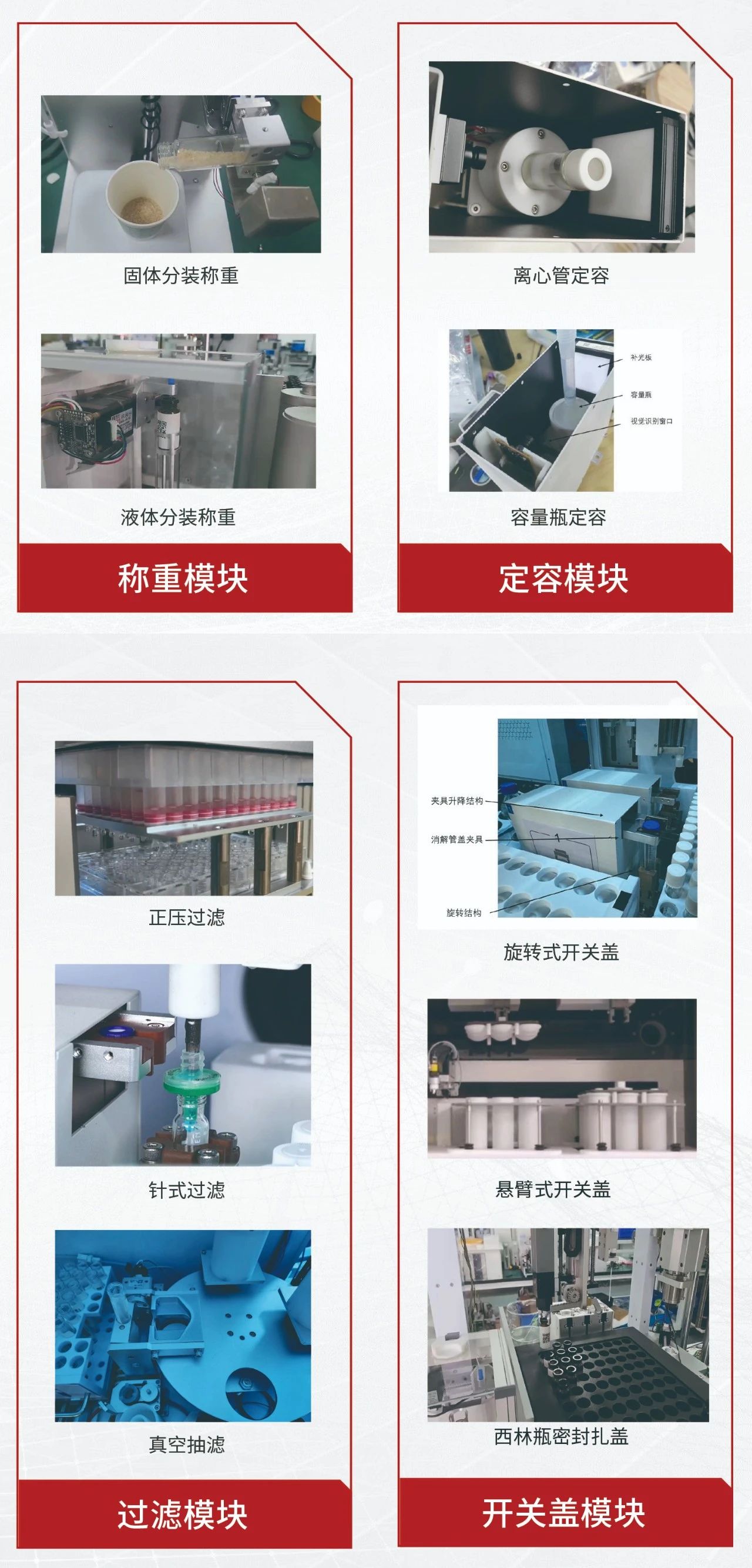 稱重模塊:可以實現(xiàn)對固體樣品或液體樣品的定量分裝。