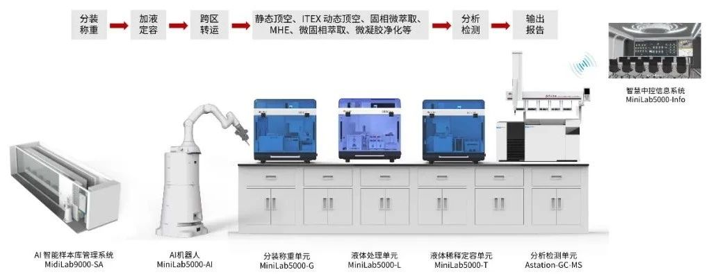 MidiLab9000-E無機元素在線分析系統(tǒng)集成智能化樣本庫管理、分裝稱重、全自動消解、稀釋定容,與質(zhì)譜、光譜分析方法相結(jié)合,通過小萊AI機器人,完成待測樣品的轉(zhuǎn)運,實現(xiàn)從樣品管理到分析檢測全流程自動化。