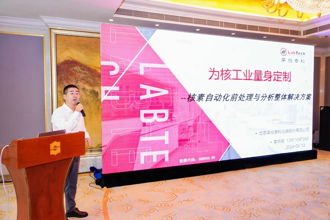 作為受邀嘉賓,萊伯泰科在“電離輻射計量&教育與科普”分會場中展示了其在核素檢測領(lǐng)域的創(chuàng)新成果。萊伯泰科核素及自動智能分析檢測事業(yè)部銷售總監(jiān)李燕明發(fā)表了《為核工業(yè)量身定制——核素自動化前處理與分析整體解決方案》的報告。他深入剖析了當前我國核素檢測標準方法中前處理技術(shù)的現(xiàn)狀與挑戰(zhàn),并強調(diào)了高效自動化前處理解決方案的迫切需求。