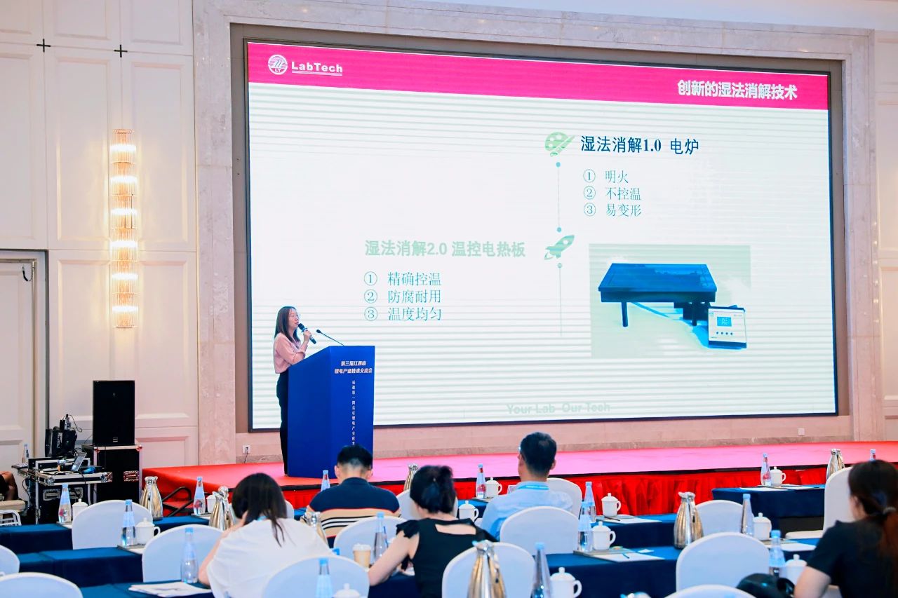 會議期間,專家學(xué)者們圍繞原材料、市場、技術(shù)等多個維度進(jìn)行了深入探討,并就鋰電回收再利用提出了獨(dú)到見解,使與會者收獲頗豐。萊伯泰科高級產(chǎn)品經(jīng)理周思佳女士發(fā)表了題為《聚焦前處理—鋰電池產(chǎn)業(yè)鏈元素分析解決方案》的演講,詳細(xì)闡述了萊伯泰科在鋰電行業(yè)原料鋰礦樣品、正極材料多種鋰鹽樣品及負(fù)極材料石墨樣品的元素分析整體解決方案,涵蓋了全自動消解儀、超級微波消解儀、全自動加液儀及全自動液體處理平臺等多種前處理及輔助儀器。周經(jīng)理的精彩報告與耐心解答贏得了與會專家、老師的高度贊譽(yù)。