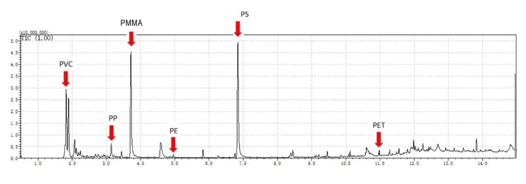 利用熱裂解分析微塑料,主要是通過裂解腔的高溫來分解塑料為裂片小分子,這些小分子可以在GC-MS得到分析,從裂片小分子中挑選定量組分和定性組分,則可對塑料進行定性定量分析。