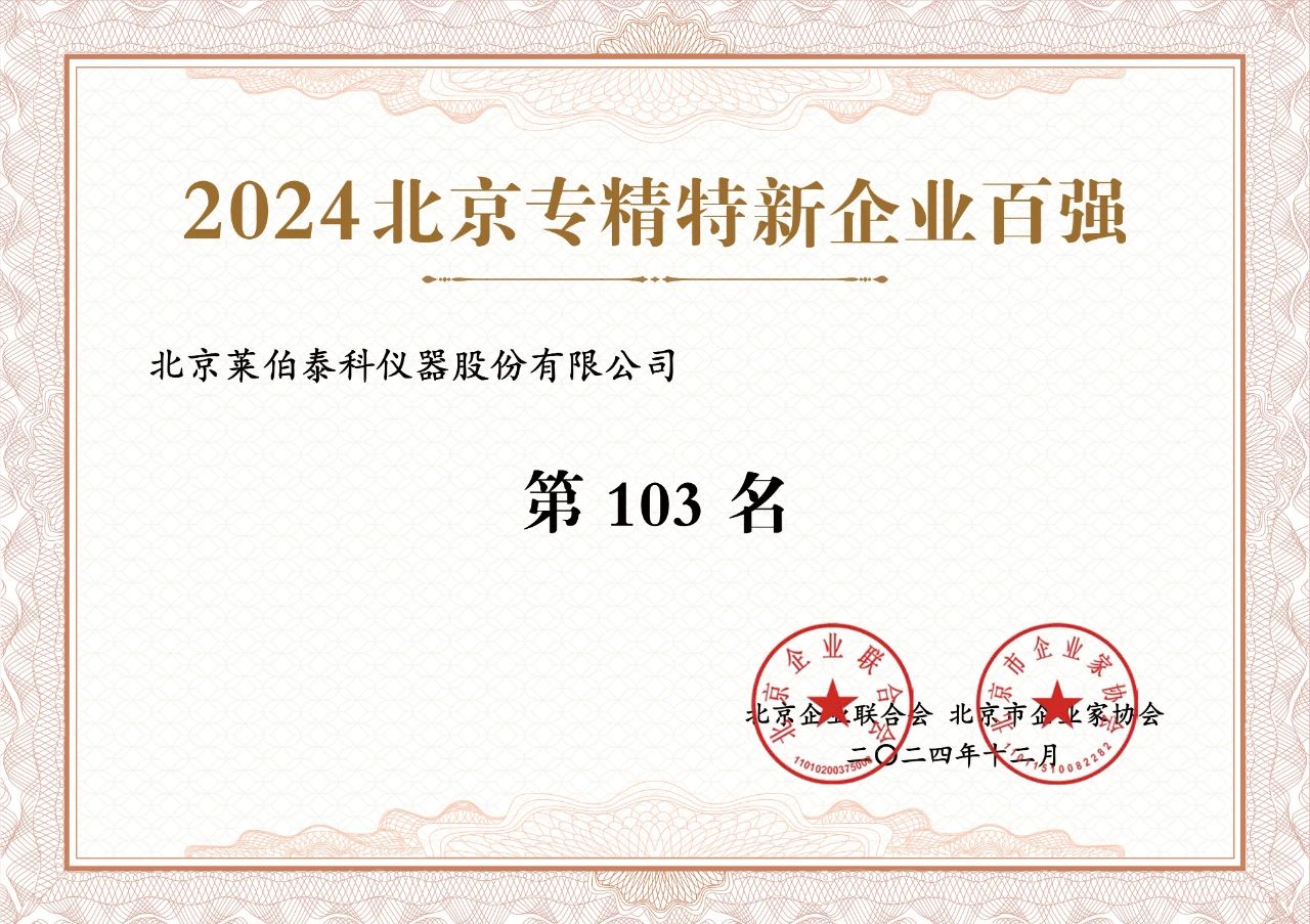 2024年12月24日,北京企業(yè)聯(lián)合會(huì)、北京市企業(yè)家協(xié)會(huì)和中關(guān)村數(shù)字經(jīng)濟(jì)產(chǎn)業(yè)聯(lián)盟共同發(fā)布了2024北京企業(yè)百?gòu)?qiáng)榜單。萊伯泰科成功上榜“2024北京專精特新企業(yè)百?gòu)?qiáng)”企業(yè)榜單。