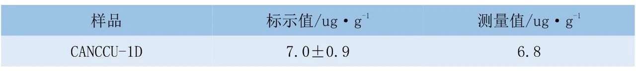 按試驗(yàn)方法對(duì)銅精礦標(biāo)準(zhǔn)物質(zhì)CANCCU-1D 進(jìn)行測(cè)定,結(jié)果見下表。