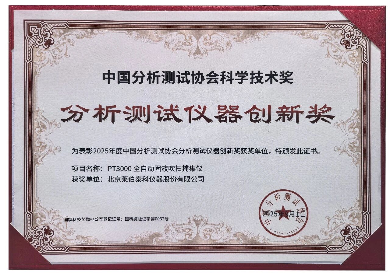 萊伯泰科研發(fā)生產(chǎn)的“PT3000 全自動(dòng)固液吹掃捕集儀”,成功斬獲分析測(cè)試儀器創(chuàng)新獎(jiǎng)(原 BCEIA 金獎(jiǎng))。針對(duì)揮發(fā)性有機(jī)物(VOCs)分析前處理的核心需求,該儀器通過兩大技術(shù)突破實(shí)現(xiàn)升級(jí):一是突破加熱與除水技術(shù)瓶頸,以直接電阻加熱 + 光輻射加熱結(jié)合常溫螺旋離心式除水、加熱消泡,兼顧除水效率與親水性化合物回收率;二是構(gòu)建全流程自動(dòng)化體系,覆蓋自動(dòng)消泡、防堵塞進(jìn)樣、多內(nèi)標(biāo)添加至智能曲線制備,攻克土壤、水質(zhì)等復(fù)雜樣品前處理的技術(shù)難題,最終實(shí)現(xiàn)分析效率與結(jié)果可靠性的雙重提升,為環(huán)境監(jiān)測(cè)、食品檢測(cè)等領(lǐng)域的 VOCs 分析提供高效解決方案。