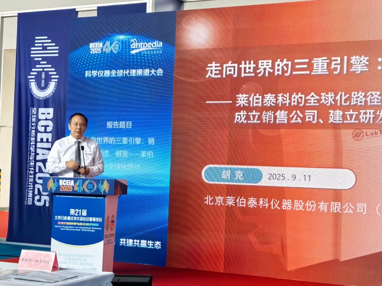 BCEIA 2025展會(huì)期間,萊伯泰科董事長胡克博士受邀出席“科學(xué)儀器全球代理渠道大會(huì)”,并發(fā)表題為《走向世界的三重引擎:銷售、制造、研發(fā)——萊伯泰科全球化路徑》的主題報(bào)告。分享了萊伯泰科以“銷售-制造-研發(fā)”協(xié)同驅(qū)動(dòng)全球化的戰(zhàn)略框架與落地成果,聚焦“新形勢(shì)下渠道變革”這一行業(yè)痛點(diǎn),牽頭與參會(huì)各方展開深度研討。此次分享既是萊伯泰科全球化經(jīng)驗(yàn)的行業(yè)輸出,更是為行業(yè)可持續(xù)發(fā)展提供實(shí)踐參考。