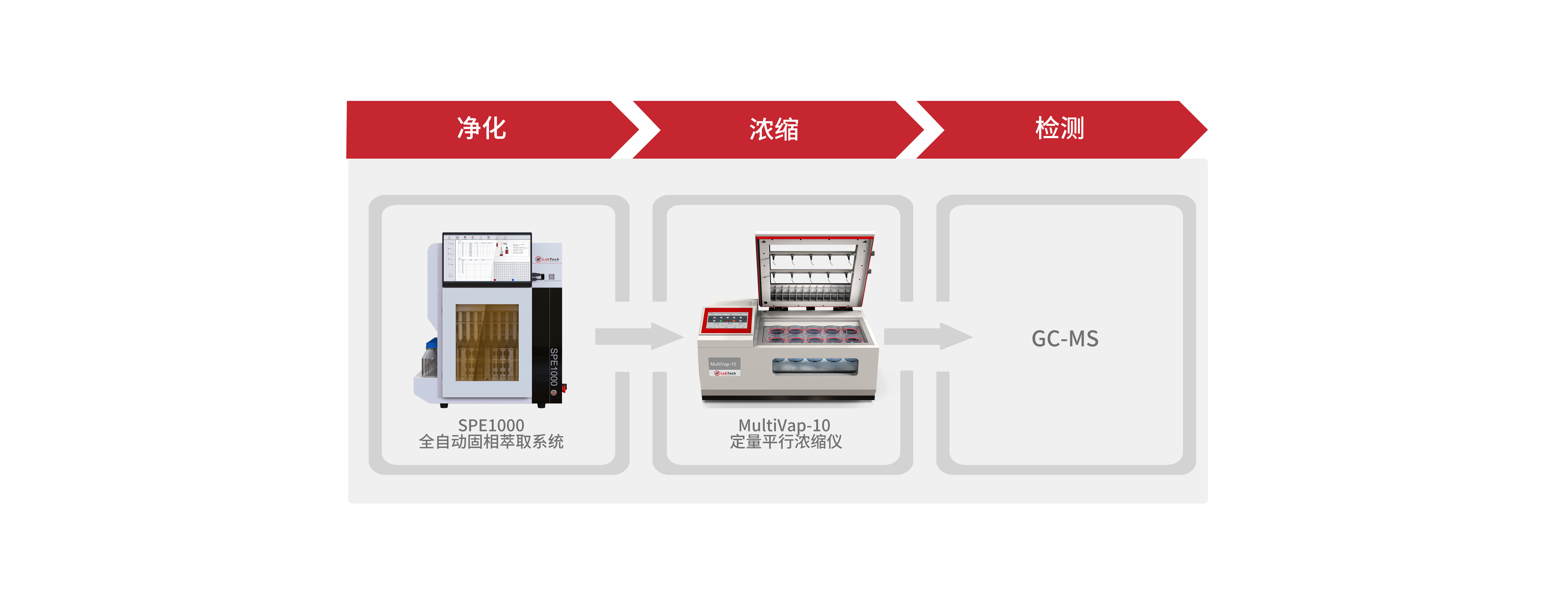 前處理凈化過程采用萊伯泰科SPE 1000全自動固相萃取系統(tǒng),連續(xù)、穩(wěn)定的陶瓷泵進樣系統(tǒng)可以有效縮短上樣時間,同時確保活化、洗脫、上樣流速穩(wěn)定可控;自動噴淋模塊可有效降低目標物粘壁,確保實驗結果準確、可重復、無上樣管路交叉污染;萊伯泰科全自動固相萃取系統(tǒng)搭配氮吹濃縮儀,二者收集瓶可兼容使用,操作連貫簡便,簡化實驗過程。
