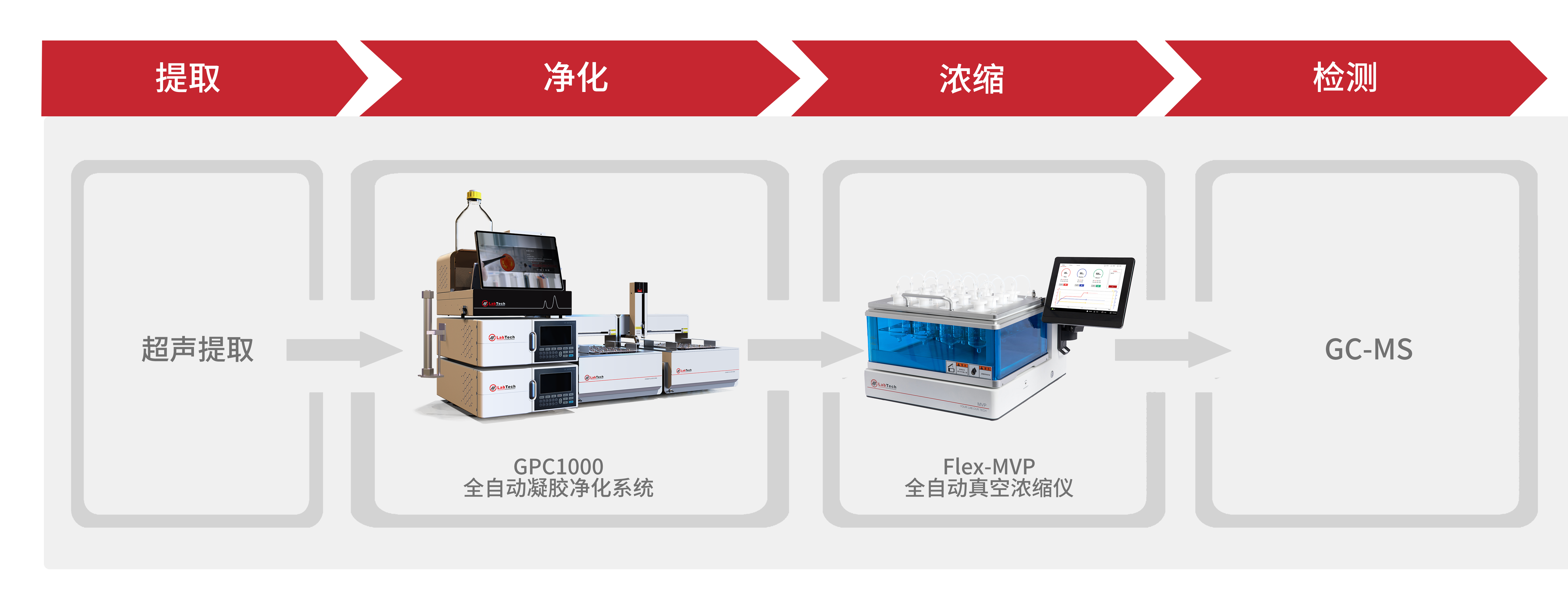 實(shí)驗(yàn)過程中使用萊伯泰科的全自動凝膠凈化系統(tǒng)凈化、全自動真空平行濃縮儀濃縮,方法準(zhǔn)確性好、精密度高、可以實(shí)現(xiàn)高通量自動化的檢測,提高實(shí)驗(yàn)效率及減少目標(biāo)物損失,兩款儀器使用方法簡便、操作靈活,通過凈化,有效降低了基質(zhì)干擾,簡化了實(shí)驗(yàn)步驟,提高了方法的檢測靈敏度,分離效果良好,可滿足日常的檢測分析。